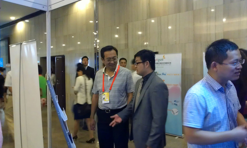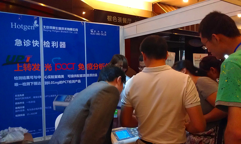 會議期間,熱景生物展示急診快檢利器——上轉(zhuǎn)發(fā)光免疫分析儀,獨(dú)特的方法,全面的產(chǎn)品,引起急診領(lǐng)域?qū)<依蠋煹母叨扰d趣,紛紛到展臺咨詢儀器的使用及產(chǎn)品的性能等,熱景生物的工作人員耐心的給參觀人員做了詳細(xì)的介紹。