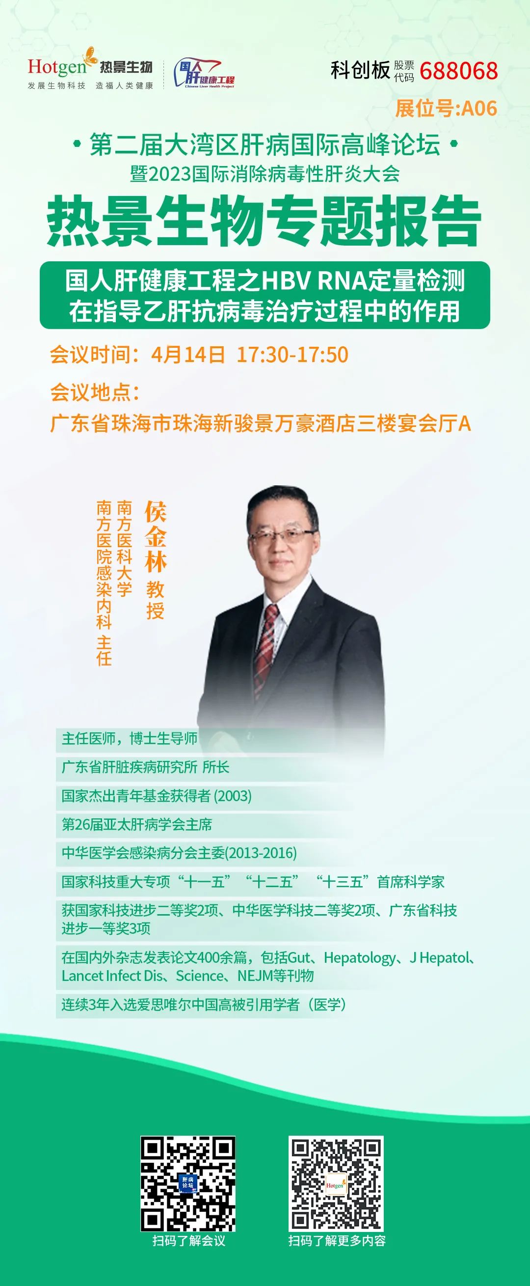 4月14日下午17:30-17:50,南方醫(yī)科大學(xué)南方醫(yī)院感染內(nèi)科主任侯金林教授受邀進(jìn)行熱景生物專(zhuān)題研討會(huì)《國(guó)人肝健康工程之HBV RNA定量檢測(cè)在指導(dǎo)乙肝抗病毒治療過(guò)程中的作用》。