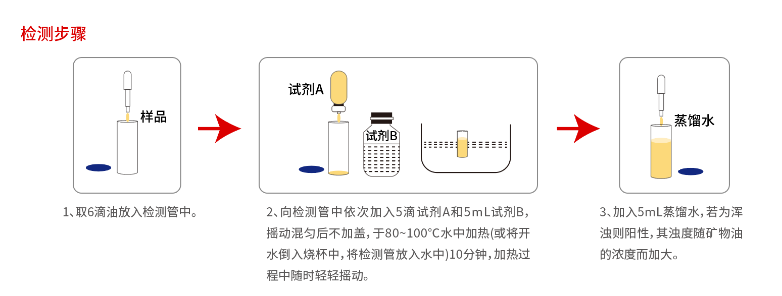 熱景生物推出的食用油中礦物油快速檢測試劑盒,只需簡單3步,10-12分鐘左右即可完成對食用油中礦物油殘留物的快速篩查,以及食用油中混雜礦物油的快速檢測,讓大家吃上放心油!