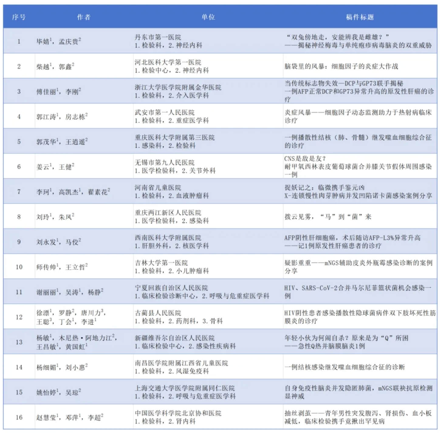 決賽名單公布 | 第四屆檢驗與臨床(感染性疾病)思維案例展示(推廣賽)