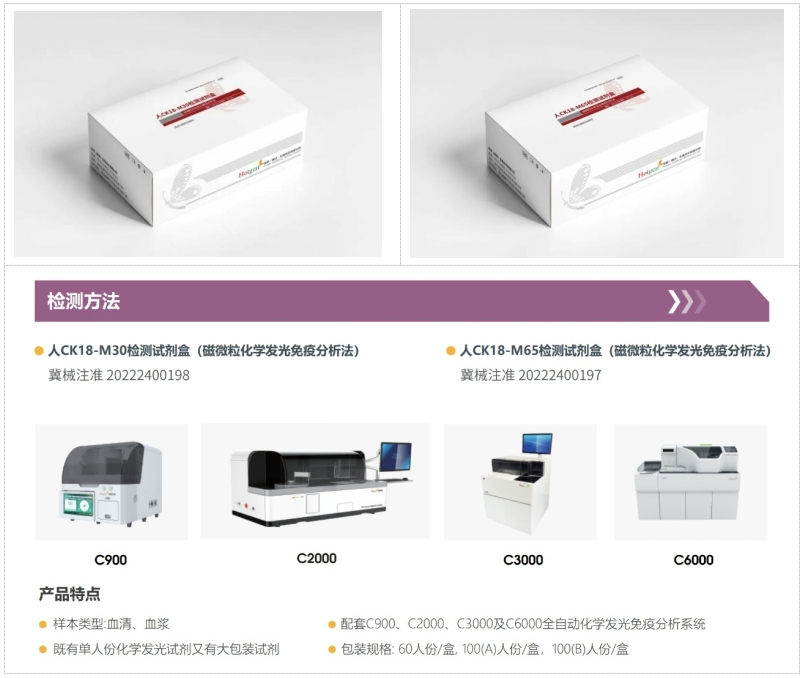 熱景生物新品-CK18(化學(xué)發(fā)光法國內(nèi)第一證)采用先進的化學(xué)發(fā)光免疫分析技術(shù),具備極高的靈敏度和特異性,能夠準確檢測血清中的CK18-M30和CK18-M65水平。