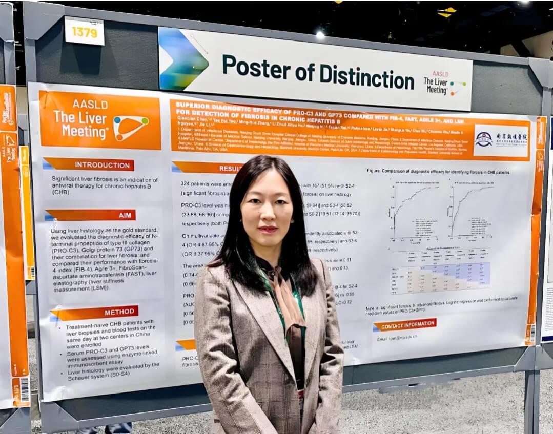 編者按:在2024年美國肝病研究學會年會(AASLD 2024)舉辦期間,南京大學醫(yī)學院附屬鼓樓醫(yī)院李婕教授、蘇州市第五人民醫(yī)院朱莉教授團隊分享了一項采用PRO-C3聯合GP73無創(chuàng)性診斷慢性乙型肝炎(CHB)肝纖維化的最新研究成果。該研究榮獲“大會優(yōu)秀壁報”(Poster of Distinction)。本刊特此進行報道,以饗讀者。
