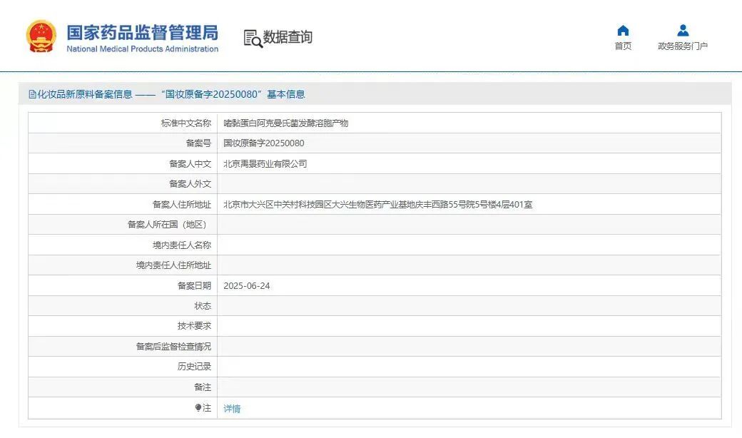 中國(guó)北京,2025年6月24日——熱景生物(股票代碼:688068)孵化的北京禹景藥業(yè)有限公司(以下簡(jiǎn)稱“禹景藥業(yè)”)自主研發(fā)的Akkermansia muciniphila YG2602(AKK YG2602)成功通過(guò)國(guó)家藥品監(jiān)督管理局化妝品新原料備案(備案號(hào):國(guó)妝原備字20250080),成為全球首個(gè)獲批的AKK菌化妝品新原料。