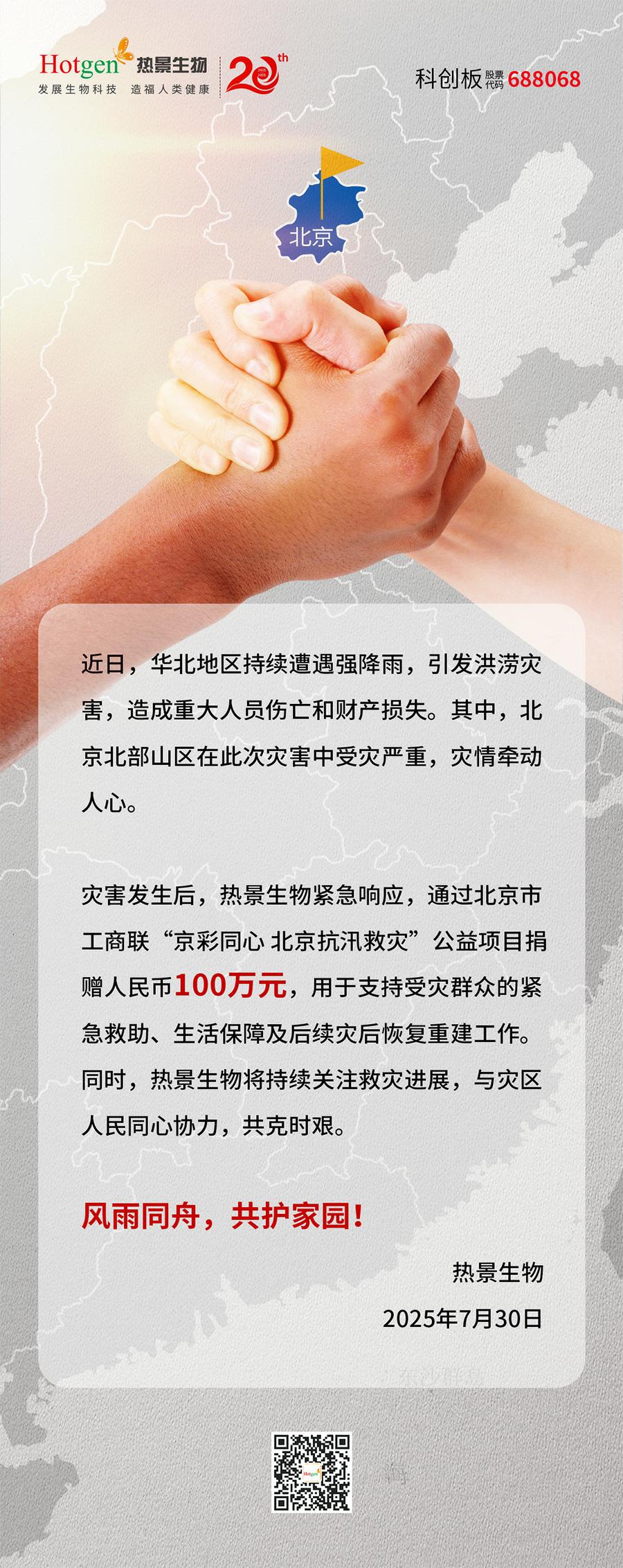 風(fēng)雨同舟|熱景生物捐贈100萬元,馳援強(qiáng)降雨救災(zāi)工作