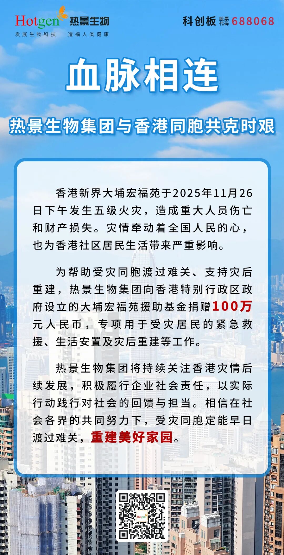 血脈相連,熱景生物集團與香港同胞共克時艱
